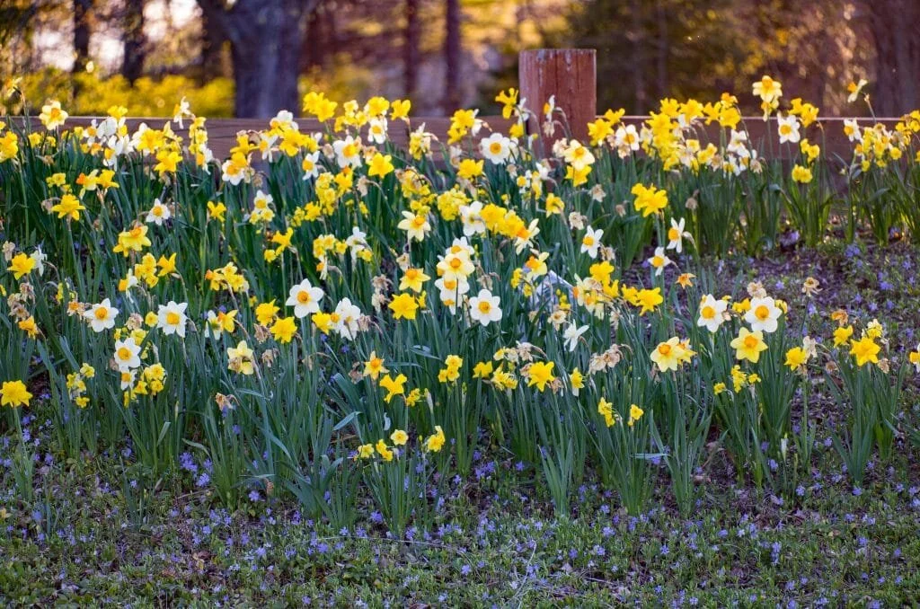 Falconet Daffodils - You guys. I can’t even wait to show you these next spring if my idea works out. I bought 100 of them :O Just call me Laura from Garden Answer! The grand plan: we have a short wall at the back of our backyard which breaks up our yard from the woods behind it. The area immediately behind the wall is covered in an evergreen myrtle that is super nice. Luckily for us, someone years ago planted one little daffodil. It pops up each year and it’s just like a little patch of sunshine. So… I’m going to turn that into 100 patches of sunshine. (!!!!) Here’s the area I’m talking about: